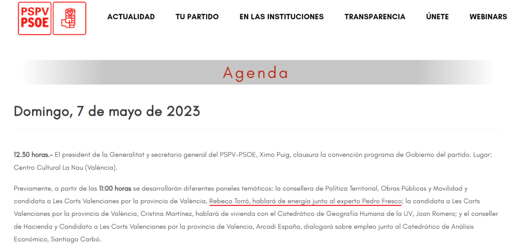 Procedente del sector privado, Pedro Fresco fue nombrado y después cesado como director general por Compromís. Tiene su gracia, se puede ver en multitud de videos y declaraciones suyas, que siempre hiciera referencia a que ‘no entendía en qué consistía aquello de transición ecológica‘. Y tiene su gracia porque era la denominación oficial de la dirección general que ocupaba.
