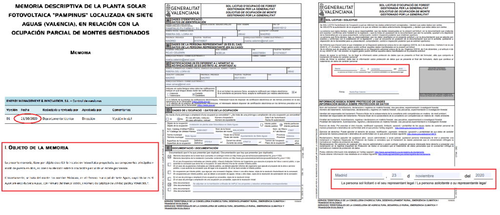 Junto con la solicitud de ocupación de montes, y con objeto de obtener la autorización administrativa previa, en noviembre de 2021 se expone a información pública toda la documentación en la web de la conselleria, incluida la memoria del proyecto: