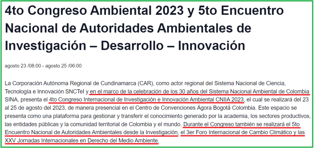 Parece que la Cumbre está enmarcada dentro de un conjunto de eventos incluidos en la celebración del 30 aniversario del Sistema Nacional Ambiental de Colombia.
