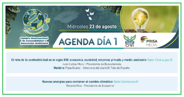 ¡Ah!, quizás es al revés, es la cumbre la que incluye todos esos eventos. Al menos es lo que parece indicar el cartel anunciador de los organizadores: PRISA, la editora de El País y CAR, entidad autónoma medioambiental de la región colombiana de Cundinamarca.