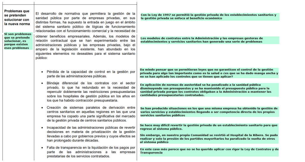 Ahora nos piden opinión sobre un Anteproyecto de Ley del que solo se nos indican algunos puntos sobre los conciertos con la sanidad privada.