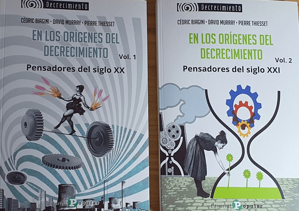 Queremos aprender y entender lo que ofrecen las teorías del decrecimiento y, para ello, vamos a seguir los dos tomos del libro En los orígenes del decrecimiento de los autores Cédric Biagini, David Murray y Pierre Thiesset. Publicadas las dos primeras ediciones en francés en 2017 y 2020, se editó en España por la Editorial Popular en 2022.